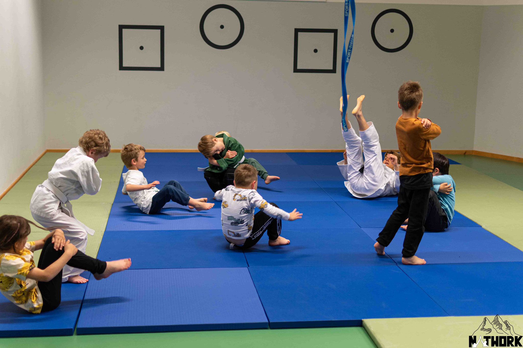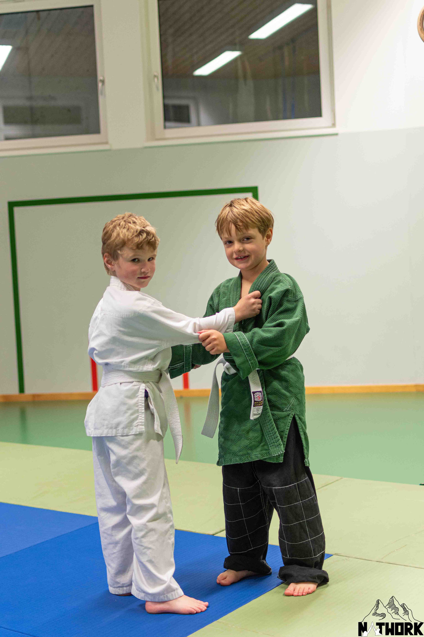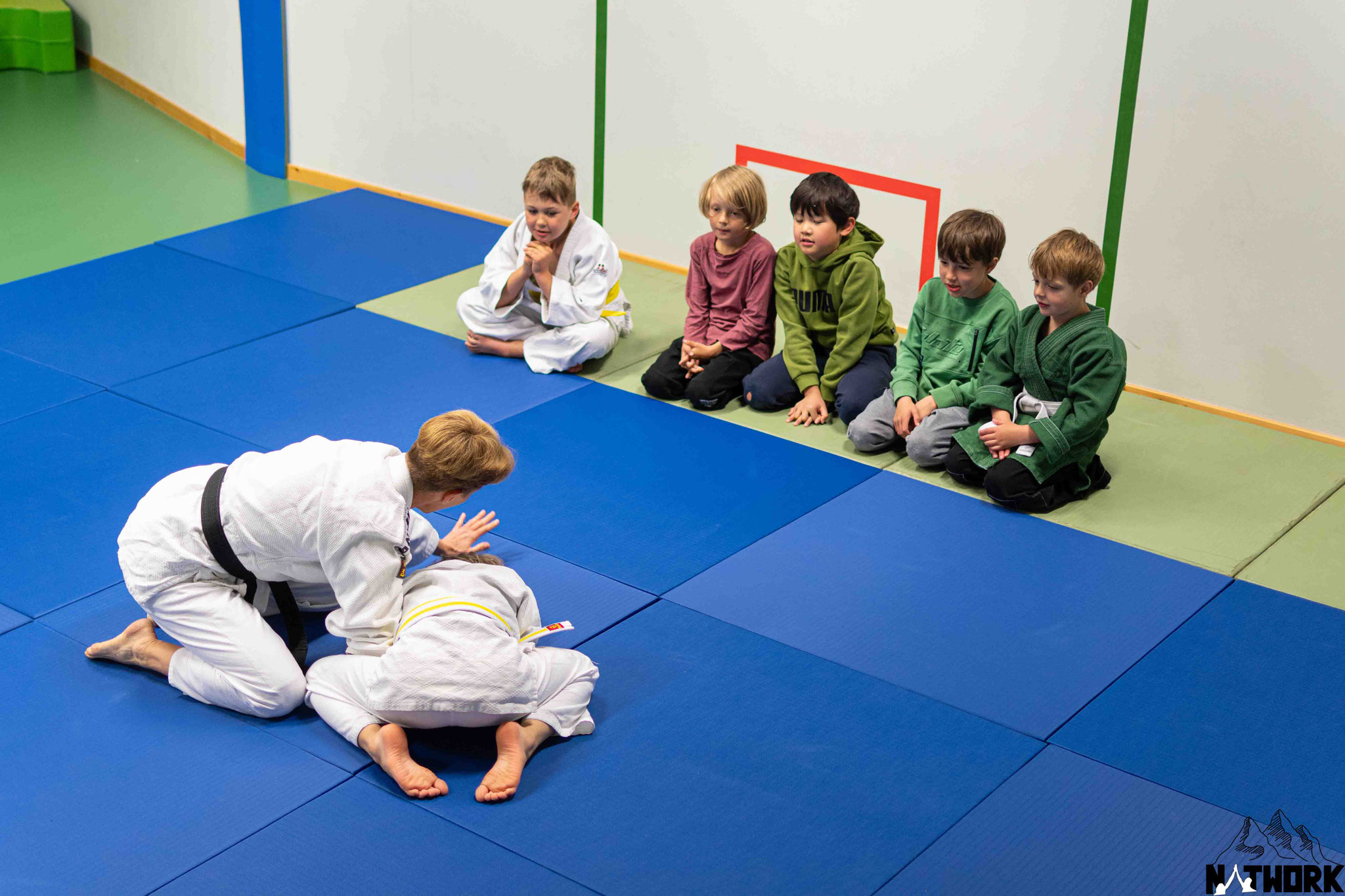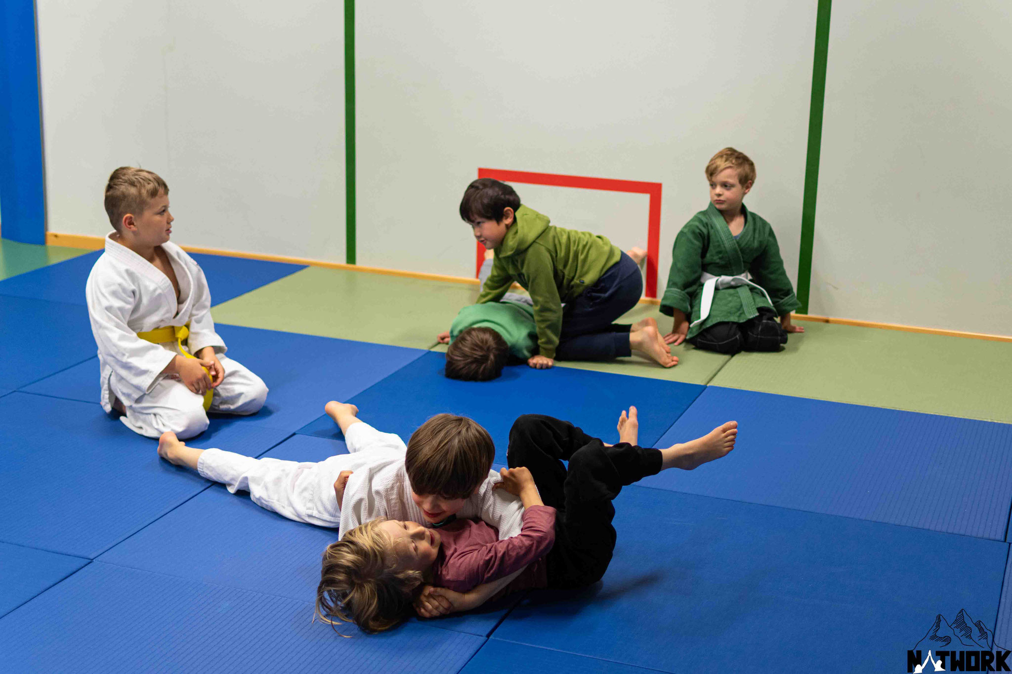 Falltechniken und Haltegriffe, wodurch es eine sichere und kindgerechte Sportart ist.